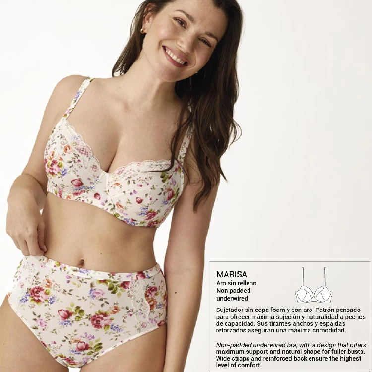 Conjunto mujer Promise Z15110 Copa C Aro sin rellenoSujetador en copa C, sin copa foam y con aro. Patrón pensado para ofrecer la máxima sujeción y naturalidad a pechos de capacidad. Sus tirantes anchos y espaldas reforzadas aseguran una máxima comodidad.Braga maxi estampada completa.Presentación: Caja individualColor: Off WhiteTallas: 90, 95, 100, 105 y 110Composición: