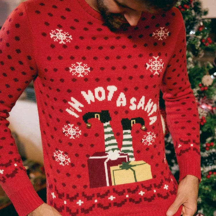 Jersey hombre Ysabel Mora 70111 NavidadModelo navideño para hombre con cascabeles.Presentación: Caja individual con decoración navideñaColor: ÚnicoTallas: S, M, L y XLComposición: 100% Acrílico