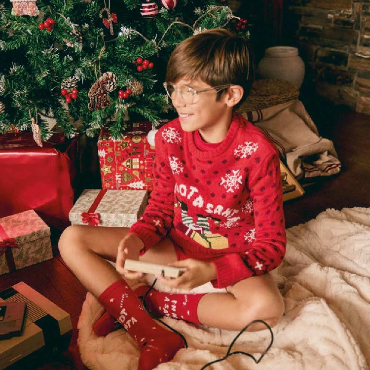Jersey infantil Ysabel Mora 70309 NavidadModelo navideño para niños con cascabeles.Presentación: Caja individual con decoración navideñaColor: ÚnicoTallas: 2, 4, 6, 8, 10, 12 y 14Composición: 100% Acrílico