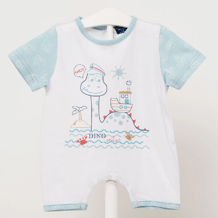 Pelele bebe KinaNit 14El pelele corto para bebé Kinanit KN14 es una adorable opción para los más pequeños. Este pelele, en un suave color blanco, presenta mangas de color azul que combinan a la perfección. Está diseñado con corchetes en la espalda y en la entrepierna para facilitar su colocación. En el centro, destaca un estampado encantador de un simpático dinosaurio, agregando un toque de diversión al diseño. Además, está ribeteado en el cuello y las piernas con un tono azul que complementa las mangas, brindando confort y estilo para el bebé.Presentación: Caja individual de la marcaColor: ÚnicoTallas: 0, 1, 3, 6, 9, 12, 18 y 24Composición: AlgodónCuidados: Seguir las instrucciones de lavado que indica la prenda.Nota sobre el color: Los colores reales del producto pueden variar ligeramente con respecto a los colores que muestra su monitor.
