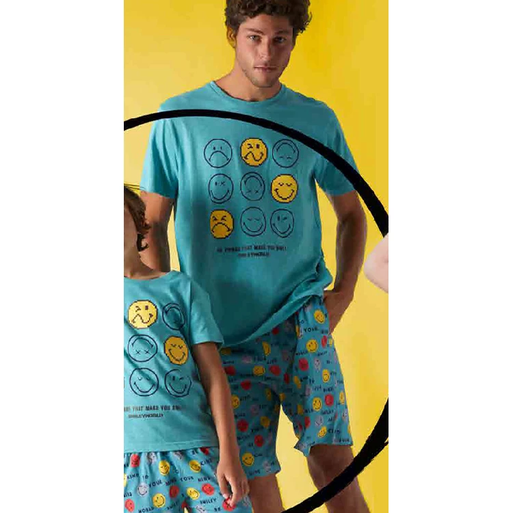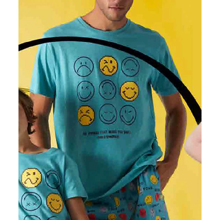 Pijama de hombre Mr.Wonderful 55664 de punto slub primavera-veranoCamiseta manga corta, con cuello redondo, detalles en relieve y estampado.Pantalón corto estampado coordinado.Presentación en caja individual de la licencia.Color: AquaTallas: S, M, L, XL y XXLComposición: 100% algodónCombinan: 55657, 55664, 55639 y 56680