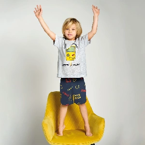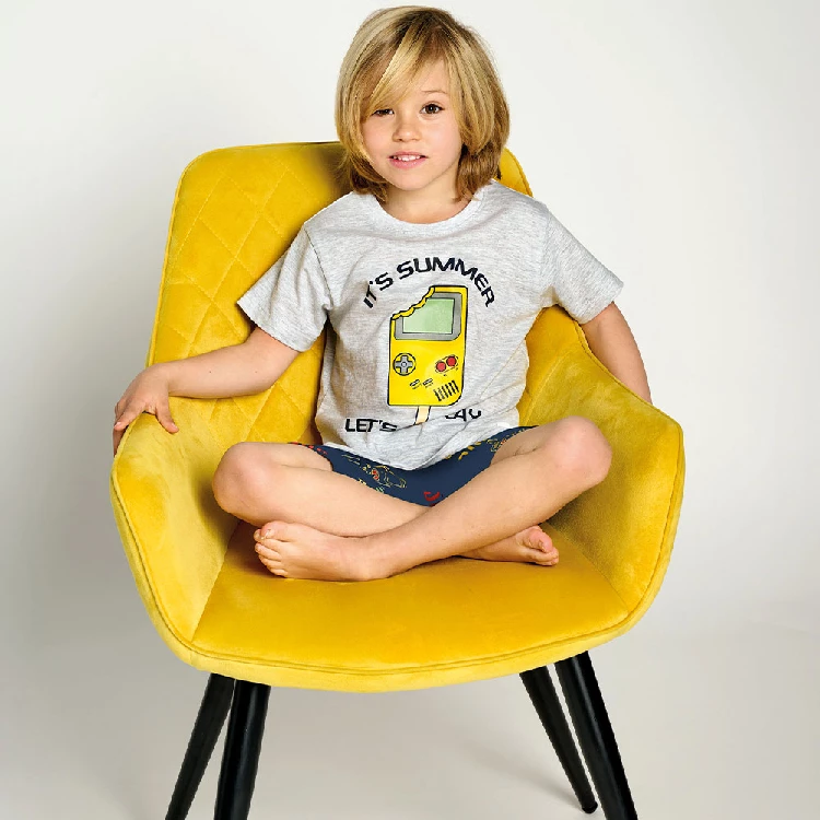 Pijama de niño Muydemi 17071018 Punto liso Camiseta de manga corta, cuello redondo, con estampado de videojuegos.Pantalón corto con estampado combinado.Presentación: caja individual de la marcaColor: Único Tallas: 4, 6, 8, 10, 12, 14 y 16Composición: Algodón 100%Combinan: 13071082 y 17071018