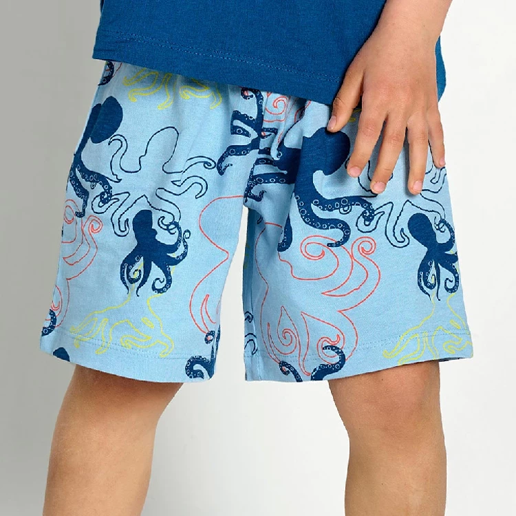 Pijama de niño Muydemi 17071020 Punto liso Camiseta de manga corta, cuello redondo, con estampado de un pulpo en una Vespa.Pantalón corto con estampado repetido de pulpos. Presentación: caja individual de la marcaColor: Único Tallas: 4, 6, 8, 10, 12, 14 y 16Composición: Algodón 100%Combinan: 17071020 y 13071090