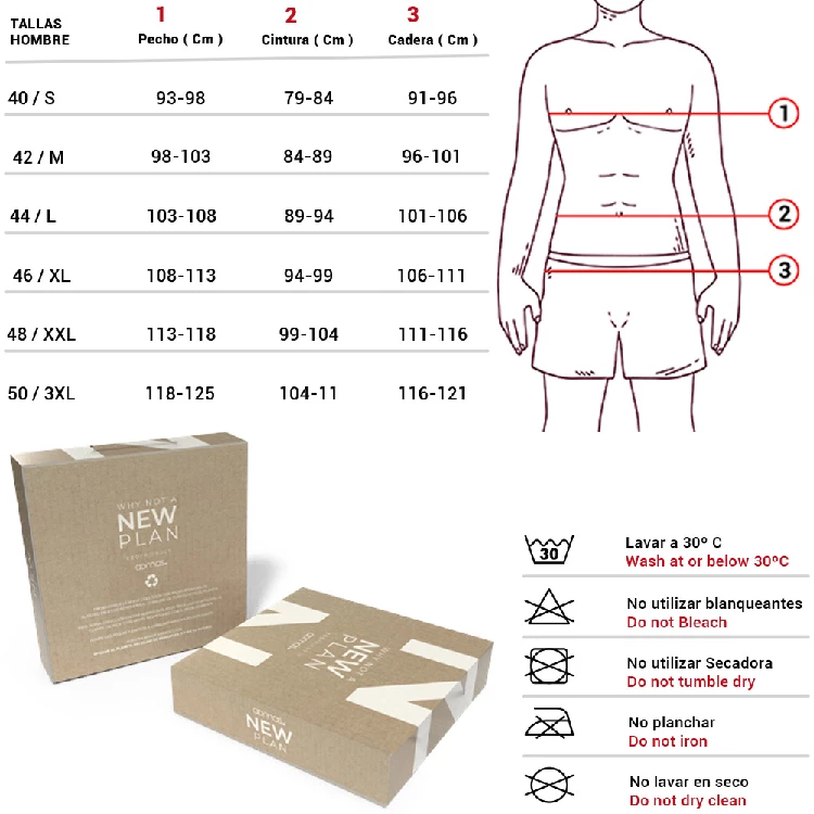 Pijama de hombre New Plan 63756 otoño-inviernoCamiseta punto, Felpa, manga larga, con cuello redondoDetalle relieve en el centro de la camisetaPantalón punto Interlock color DenimBolsillos laterales – Puños PantalónColor: Caqui Presentación en caja individual de la marca.Tallas: S, M, L, XL y XXLComposición: 100% algodón