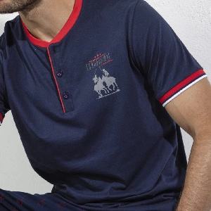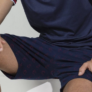 Pijama hombre Admas 64779 PuntoCamiseta de manga corta y cuello tapeta de 3 botones con estampado en el pecho.Pantalón corto estampado completo.Detalles en relieve.Presentación: Caja individual con caja personalizadaColor: MarinoTallas: M, L, XL y XXLComposición: 100% Algodón