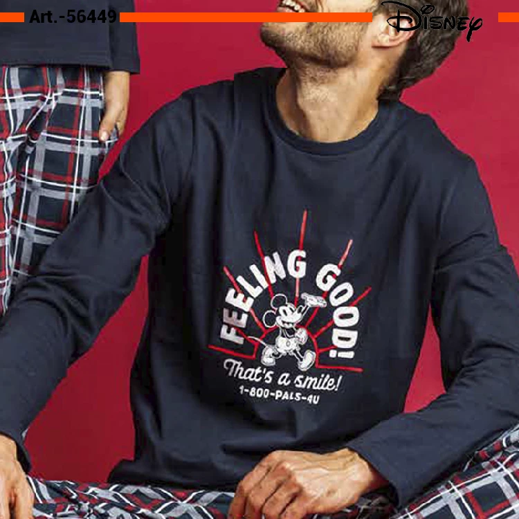 Pijama hombre Disney 56449 Otoño-invierno PuntoCamiseta de manga larga y cuello redondo con estampado en el pecho.Pantalón largo estampado completo coordinado con puño y bolsillosPresentación: Caja individual de la marcaTallas: S, M, L, XL y XXLColor: MarinoComposición: 100% algodón