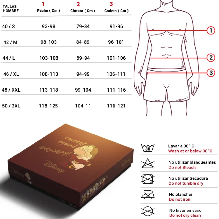 Pijama hombre Disney 64211 VigoréCamiseta de manga corta y cuello redondo con estampado en el pecho de Gruñón.Pantalón corto estampado con bolsillos laterales.Presentación: Caja individual con caja personalizadaColor: CamelTallas: M, L, XL y XXLComposición: 60% Algodón y 40% Poliéster