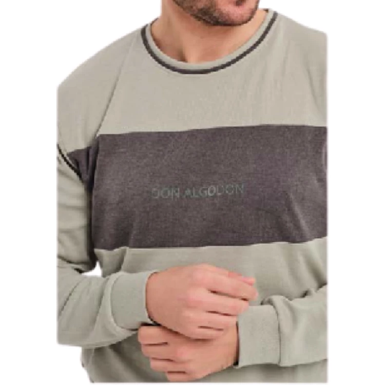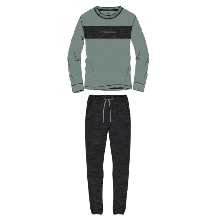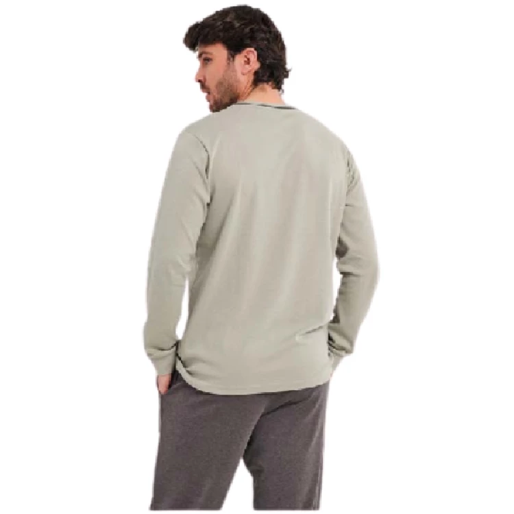 Pijama hombre Don algodón DA25W301 interlockCamiseta de manga larga y cuello redondo, banda a contraste en el pecho con bordado de la marca y mangas con puños.Pantalón largo liso gris oscuro con puños.Presentación: Caja individual personalizada de la marcaColor: Gris claro y gris oscuroTallas: S, M, L, XL, XXL,Composición: Interlock 100% algodón