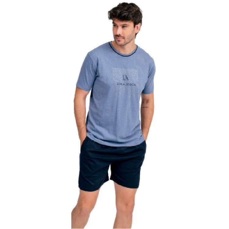 Pijama hombre Don Algodón DA26S304Camiseta de manga corta y cuello redondo con estampado en el pecho.Pantalón corto básico con bolsillos en los laterales.Presentación: Caja individual Color: ÚnicoTallas: S, M, L, XL y XXLComposición: 100% Algodón