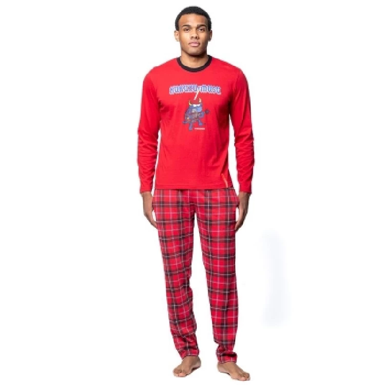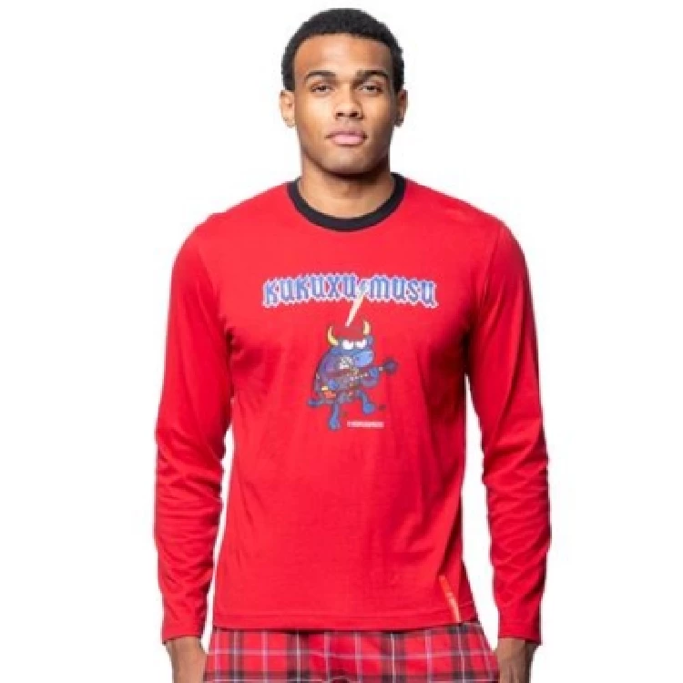 Pijama hombre Kukuxumusu 252252 AlgodónCamiseta de manga larga y cuello redondo con estampado en el pecho y manga con puño.Pantalón largo estampado completo con bolsillos en los laterales.Presentación: Caja individualColor: RojoTallas: S, M, L, XL y XXLComposición: 100% Algodón