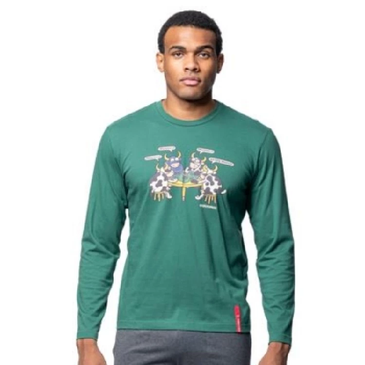 Pijama hombre Kukuxumusu 252253 AlgodónCamiseta de manga larga y cuello redondo con estampado en el pecho y manga con puño.Pantalón largo básico con bolsillos en los laterales y puño.Presentación: Caja individualColor: VerdeTallas: S, M, L, XL y XXLComposición: 100% Algodón