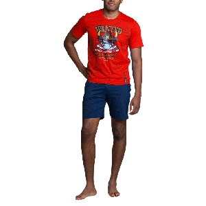Pijama hombre Kukuxumusu 261255Camiseta de manga corta y cuello redondo con estampado en el pecho.Pantalón corto básico.Presentación: Caja individualColor: ÚnicoTallas: S, M, L, XL y XXLComposición: Algodón