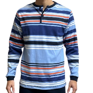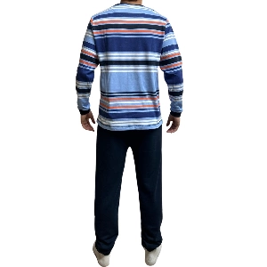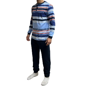 Pijama hombre Lacotex 24949Camiseta de manga larga y cuello abotonado, estampado a rayas y puño.Pantalón largo básicoPresentación: Bolsa individualColor: ÚnicoTallas: S, M, L, XL y XXLComposición: 90% Algodón y 10% poliéster