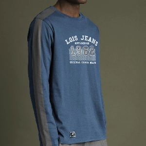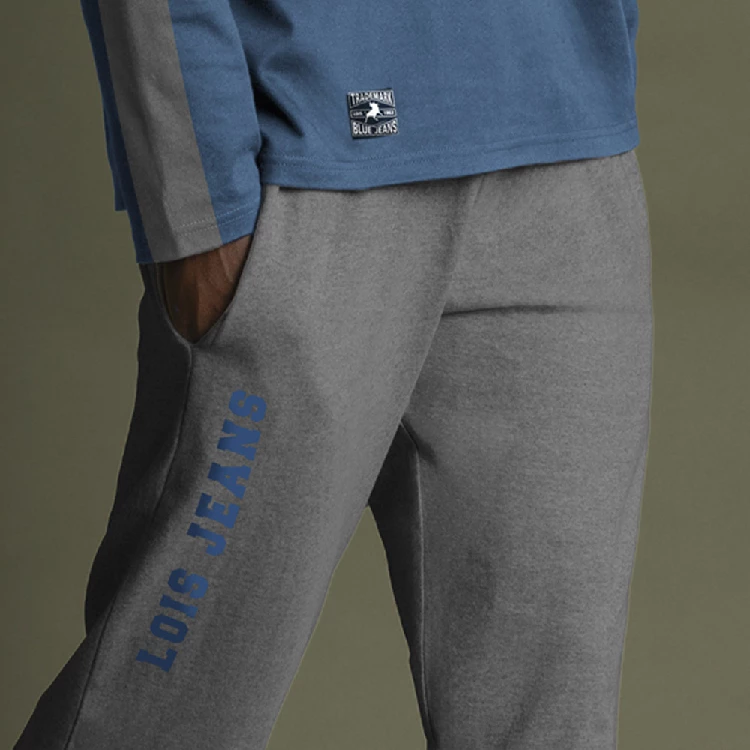 Pijama de hombre Lois 63159 de punto. Interlock, otoño-inviernoCamiseta manga larga, con cuello redondo estampado en el pechoDetalle Relieve en el centro de la camisetaPantalón liso con detalle de la marca al lado del bolsilloBolsillos laterales – Puños PantalónColor: AzulPresentación en caja individual de la marca.Tallas: S, M, L, XL y XXLComposición Camiseta: 96% algodón y 4% poliésterComposición Pantalón: 52% algodón y 48% poliéster