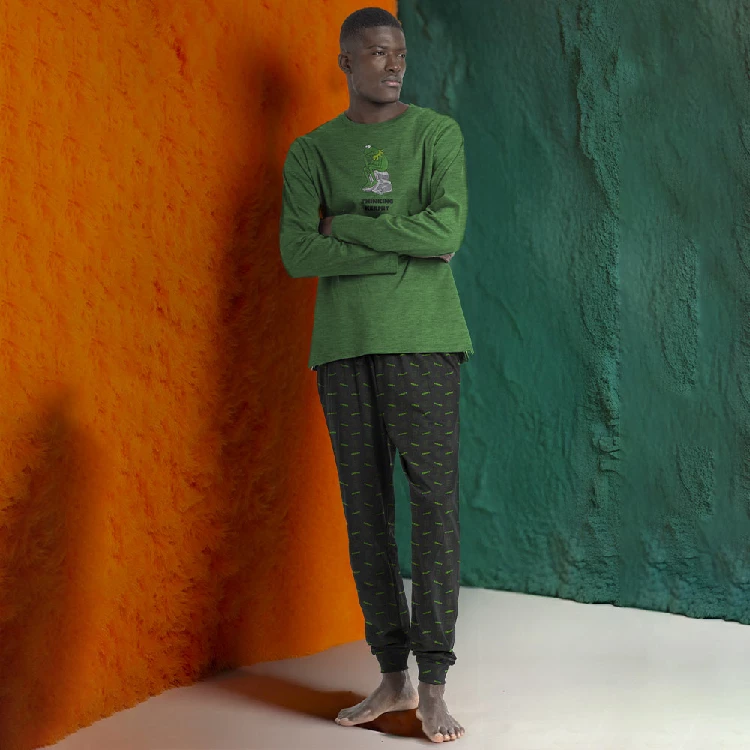 Pijama de hombre Muppets 63902 de punto Single jersey otoño-inviernoCamiseta manga larga, con cuello redondo estampado DisneyDetalle relieve estampado en centro de la camisetaPantalón estampado Puño pantalón. Bolsillos lateralesColor: AzulPresentación en caja individual de la marca.Tallas: S, M, L, XL y XXLComposición Camiseta: 60% algodón y 40% poliéster Composición Pantalón: 100% algodón