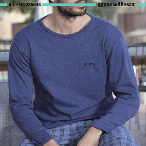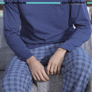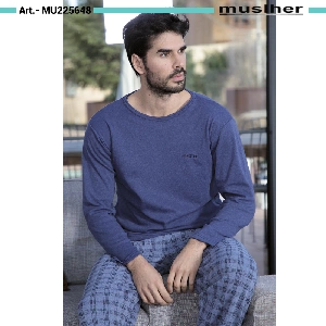 Pijama hombre Muslher 225648 Otoño-invierno interlock perchadoCamiseta de manga larga y cuello redondo con bordado de la marca.Pantalón largo estampado completoPresentación: caja individual de la marca con ventana.Color: ÚnicoTallas: S, M, L, XL y XXLComposición: 50% algodón y 50% poliéster