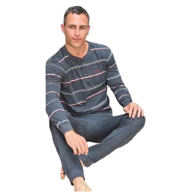 Pijama hombre Muslher 265013 Punto lisoCamiseta de manga larga y cuello tapeta con estampado completo. Manga con puño.Pantalón largo básico con puño.Presentación: Caja individualColor: ÚnicoTallas: S, M, L, XL y XXLComposición: 85% Algodón y 15% poliéster