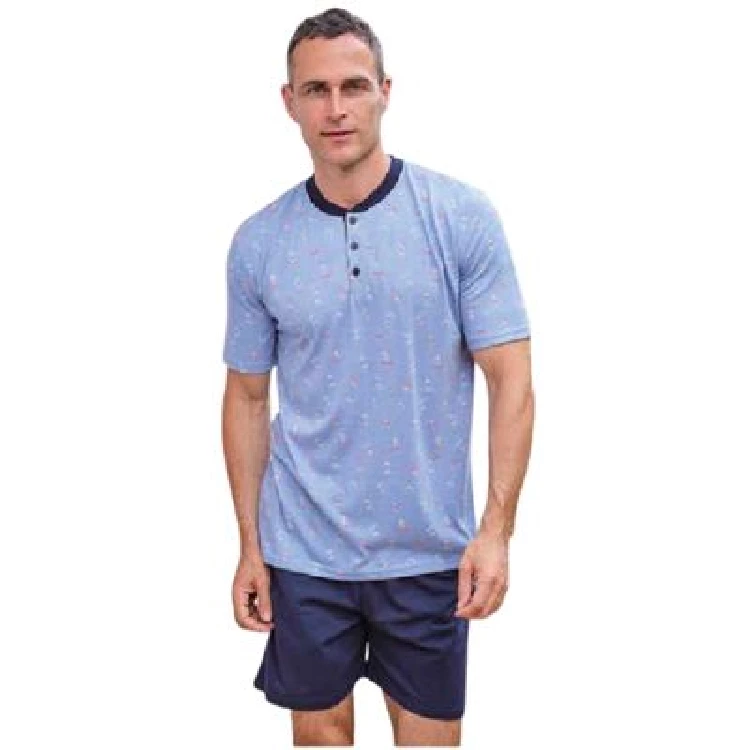 Pijama hombre Muslher 265030 Punto lisoCamiseta de manga corta y cuello tapeta con estampado completo.Pantalón corto básico.Presentación: Caja individualColor: ÚnicoTallas: S, M, L, XL y XXLComposición: 85% Algodón y 15% poliéster