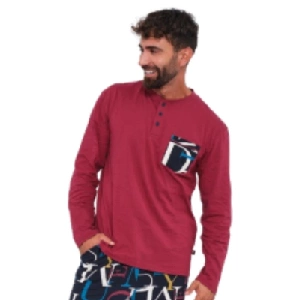 Pijama Hombre Muydemi 390094 Single Jersey.Camiseta de manga larga y cuello abierto abotonado y bolsillo en el pecho estampado.Pantalón largo totalmente estampado con puño.Presentación: pack individualColor: ÚnicoTallas: S, M, L, XL, 2XLComposición: Hecho de Single Jersey, 100% Algodón.