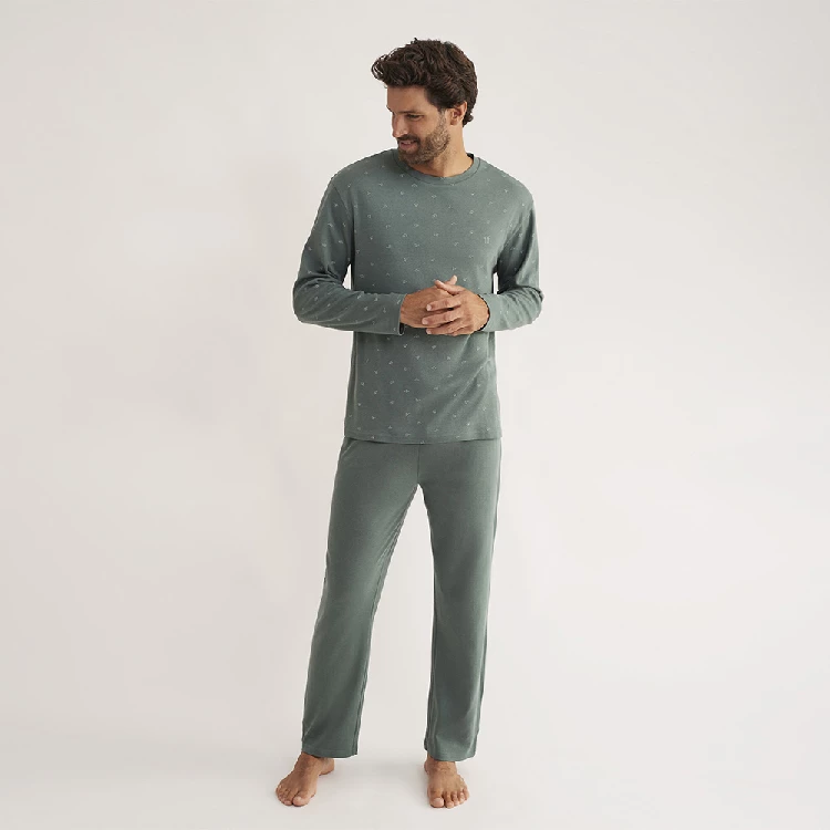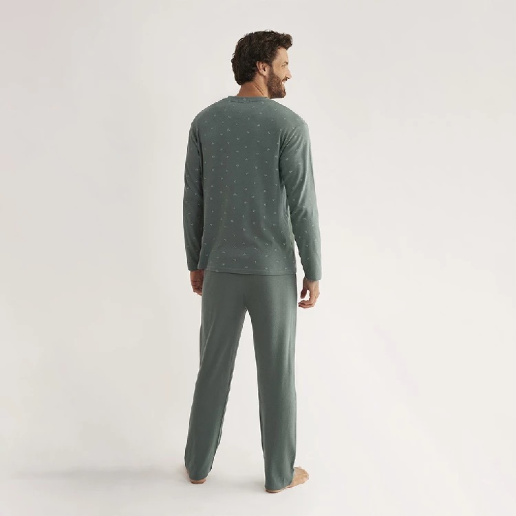 Pijama hombre Promise H33492 InterlockCamiseta de manga larga y cuello redondo y con estampado completo.Pantalón largo básico.Presentación: Caja individual de la marcaColor: VerdeTallas: S, M, L, XL y XXLComposición: 100% Algodón