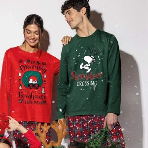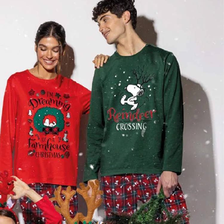 Pijama hombre Snoopy 63806 De punto NavidadCamiseta de manga larga y cuello redondo con estampado en el pecho y parche bordado.Pantalón largo estampado completo.Presentación: Packaging personalizado navideñoColor: VerdeTallas: S, M, L, XL y XXLComposición: 100% AlgodónCombinan: 63344, 63356, 63806 y 63330