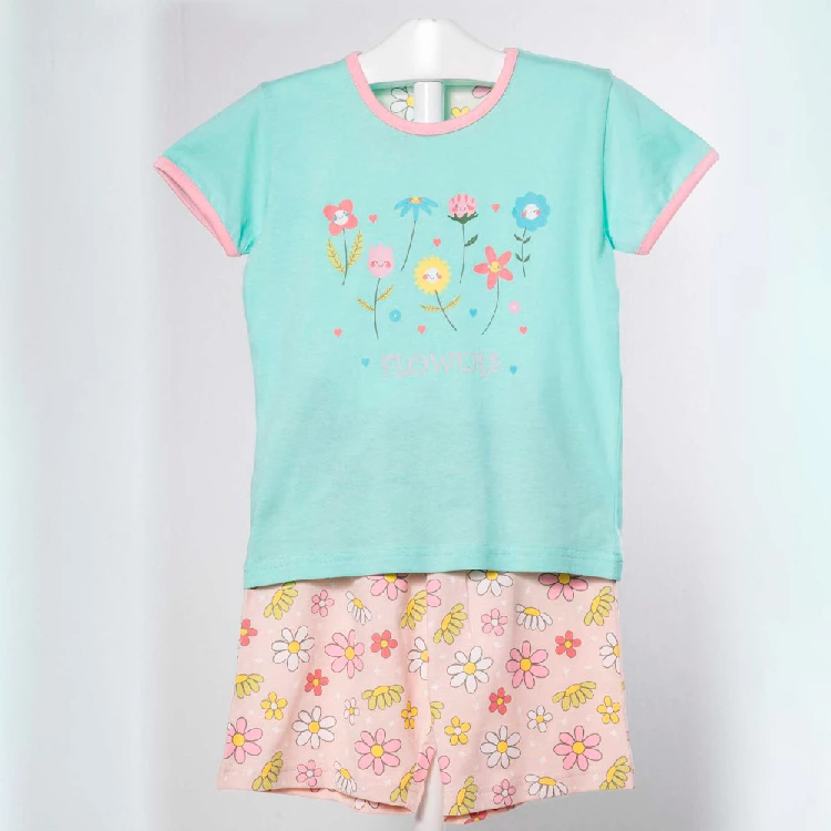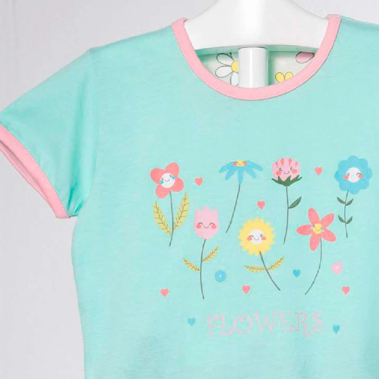 Pijama infantil niña KinaNit 219 AlgodónCamiseta de manga corta y cuello redondo y estampado en el pecho.Pantalón corto estampado completo.Presentación: Caja individualColor: ÚnicoTallas: 2, 3, 4, 5 y 6Composición: 100% Algodón