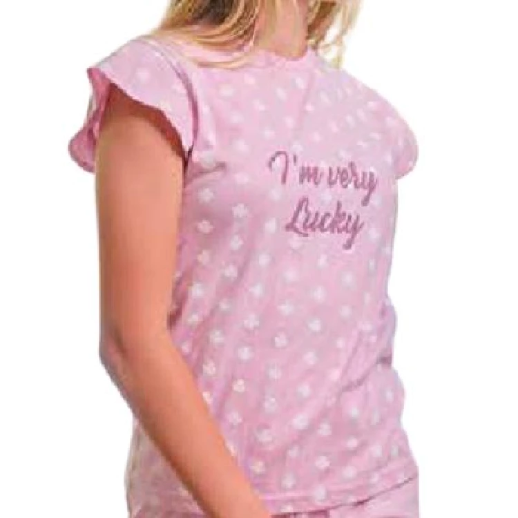 Pijama infantil niña Muslher 264015 Punto lisoCamiseta de manga corta y cuello redondo, con volante en las mangas y estampado completo.Pantalón corto básico.Presentación: Caja individualColor: ÚnicoTallas: 8, 10, 12, 14 16 y 18Composición: 100% Algodón