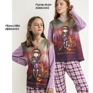 Pijama de Niña Santoro 63410 de punto. Interlock, otoño-inviernoCamiseta manga larga, con cuello redondo, tiene un estampado SantoroPantalón largo estampado completo de cuadros Detalle lazo. Detalles relieve.Color: MalvaPresentación en caja individual de la marca.Tallas: 8, 10, 12, 14 y 16Composición: 100% algodón Combinan: Pijama Niña ADM63410 – Pijama Mujer ADM63385