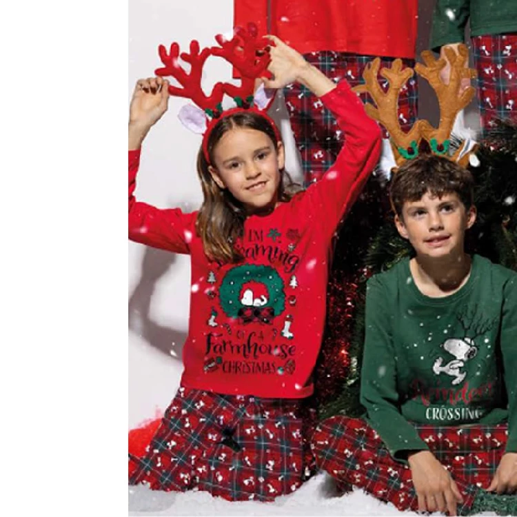 Pijama infantil niña Snoopy 63356 De punto NavidadCamiseta de manga larga y cuello redondo con estampado en el pecho.Pantalón largo estampado completo.Presentación: Packaging personalizado navideñoColor: RojoTallas: 4, 6, 8, 10, 12, 14 y 16Composición: 100% AlgodónCombinan: 63344, 63356, 63806 y 63330