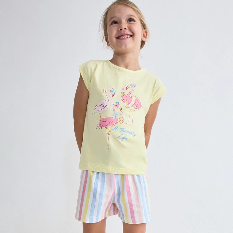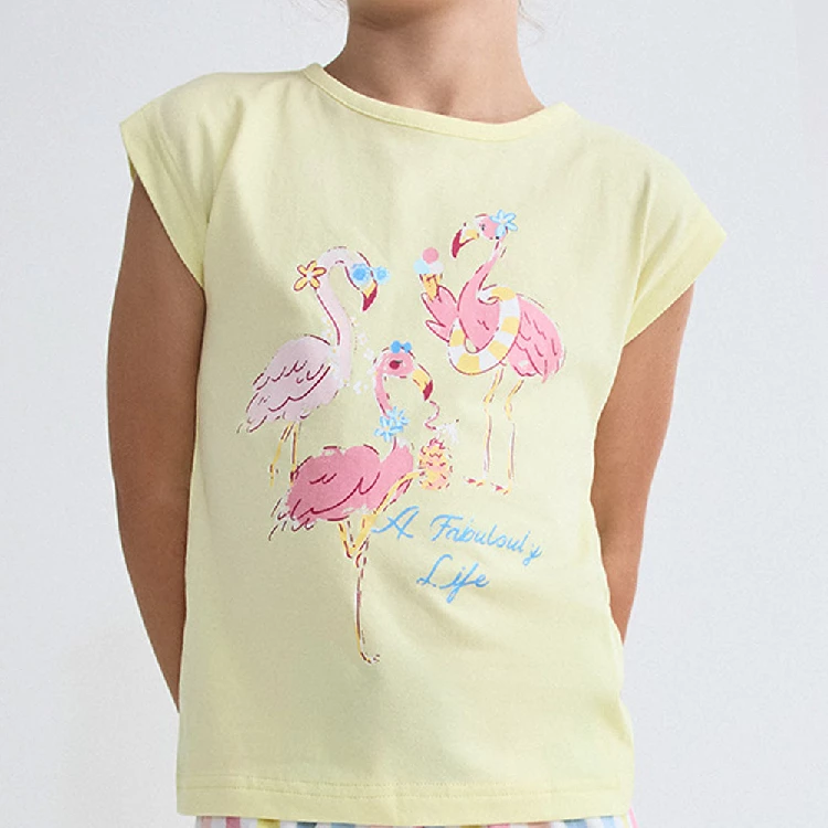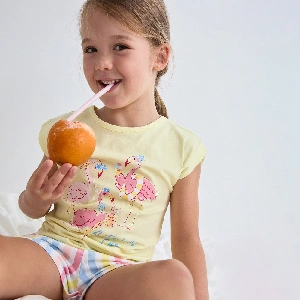 Pijama infantil niña Tobogan 26117057Camiseta de tirante ancho con cuello redondo y estampado de flamencos.Pantalón corto estampado completo.Presentación: Caja individualColor: VerdeTallas: 2, 3, 4, 5 y 6Composición: 100% Algodón