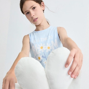 Pijama infantil niña Tobogan 26117571Camiseta de tirantes y cuello redondo con estampado floral.Pantalón corto estampado completo.Presentación: Caja individualColor: CelesteTallas: 8, 10, 12, 14 y 16Composición: 100% Algodón