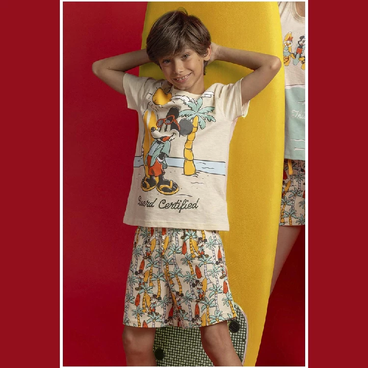Pijama infantil niño Disney 64230 PuntoCamiseta de manga corta y cuello redondo, con estampado en el pecho.Pantalón corto estampado.Presentación: Caja individual con caja personalizadaColor: CremaTallas: 4, 6, 8, 10, 12, 14 y 16Composición: 100% AlgodónCombinan: 64200, 64275, 64230 y 64250