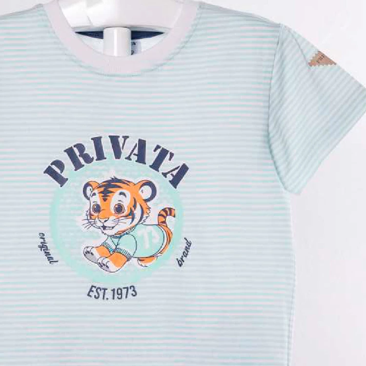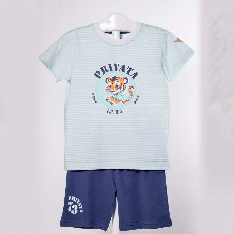 Pijama infantil niño Privata PV26104C Punto lisoCamiseta de manga corta y cuello redondo con estampado completo a rayas y en el pecho.Pantalón corto estampado en una pierna.Presentación: Caja individualColor: ÚnicoTallas: 2, 3, 4, 5 y 6Composición: Algodón, Punto liso