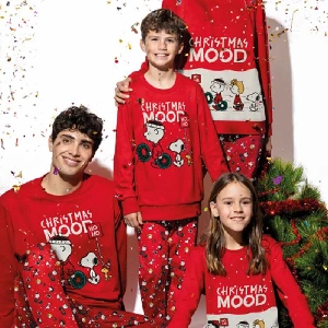 Pijama infantil niño Snoopy 63034 De punto NavidadCamiseta de manga larga y cuello redondo con estampado en el pecho. Con detalles flocados y manga con puño.Pantalón largo estampado completo con puño.Presentación: Packaging personalizado navideñoColor: RojoTallas: 4, 6, 8, 10, 12, 14 y 16Composición: 100% AlgodónCombinan: 63018, 63034, 63465 y 63466