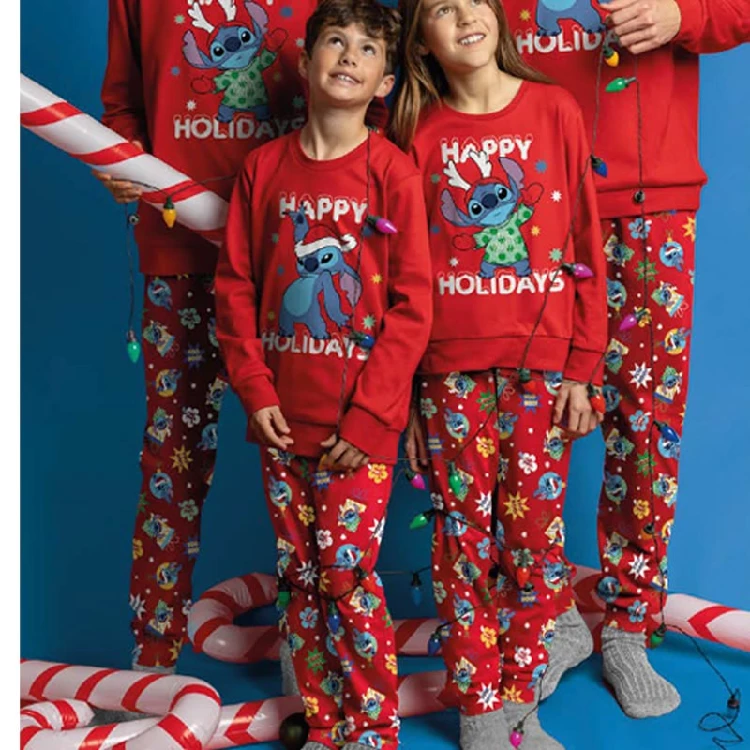 Pijama infantil niño Stitch 63892 De punto NavidadCamiseta de manga larga y cuello redondo con estampado en el pecho y detalles en relieve. Manga con puñoPantalón largo estampado completo.Presentación: Packaging personalizado navideñoColor: RojoTallas: 4, 6, 8, 10, 12, 14 y 16Composición: 100% AlgodónCombinan: 63682, 63892, 63918 y 63893