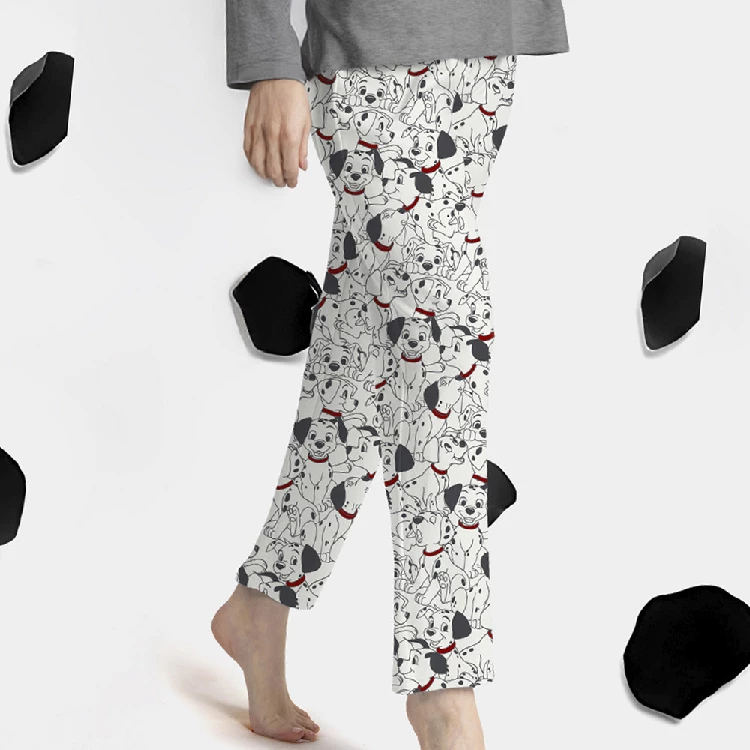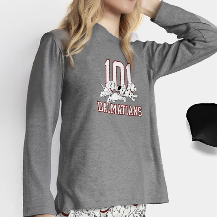 Pijama de Mujer Disney 63666 de punto, otoño-inviernoCamiseta manga larga, con cuello redondo, estampado en el pecho de 101 DálmatasPantalón largo estampado completoColor: Gris JaspeadoPresentación en caja individual de la marca.Tallas: S, M, L, XL, y XXL Composición Camiseta: 55% algodón y 45% poliésterComposición Pantalón: 100% algodón