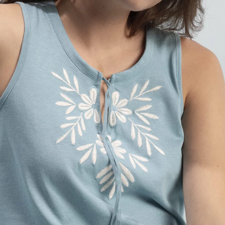 Pijama mujer Admas 64055 Punto ViscosaCamiseta de tirantes con estampado en el pecho y detalles bordados.Pantalón corto básico.Presentación: Caja individual con caja personalizadaColor: AquaTallas: S, M, L, XL y XXLComposición: 50% Algodón y 50% ViscosaCombinan: 64055 y 64056