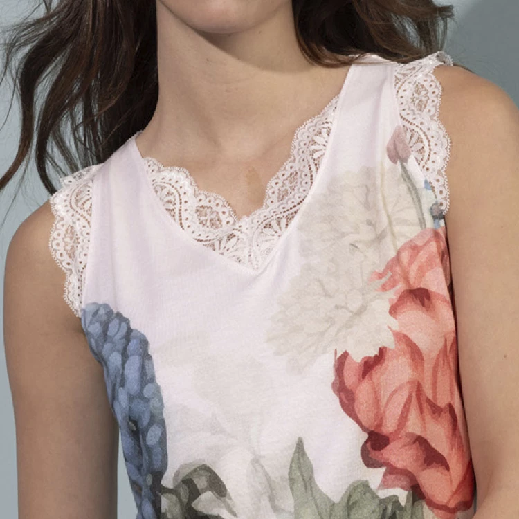 Pijama mujer Admas 64060 Punto ViscosaCamiseta de tirantes con estampado completo y detalles en puntilla.Pantalón corto básico.Presentación: Caja individual con caja personalizadaColor: PétaloTallas: S, M, L, XL y XXLComposición: 50% Algodón y 50% Viscosa