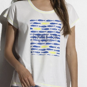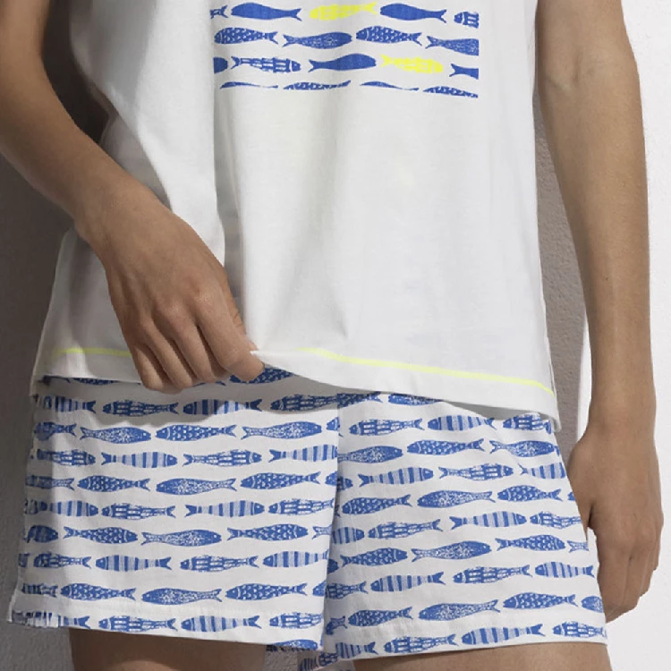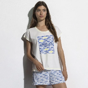 Pijama mujer Admas 64126 PuntoCamiseta de manga corta y cuello redondo, con estampado en el pecho.Pantalón corto estampado completo.Presentación: Caja individual con caja personalizadaColor: BlancoTallas: S, M, L, XL y XXLComposición: 100% Algodón
