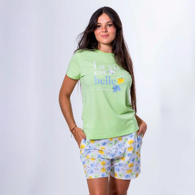 Pijama mujer KinaNit 548 AlgodónCamiseta de manga corta y cuello redondo con estampado en el pecho.Pantalón corto estampado completo con bolsillos en los laterales.Presentación: Caja individualColor: ÚnicoTallas: P, M, G y SGComposición: 100% Algodón