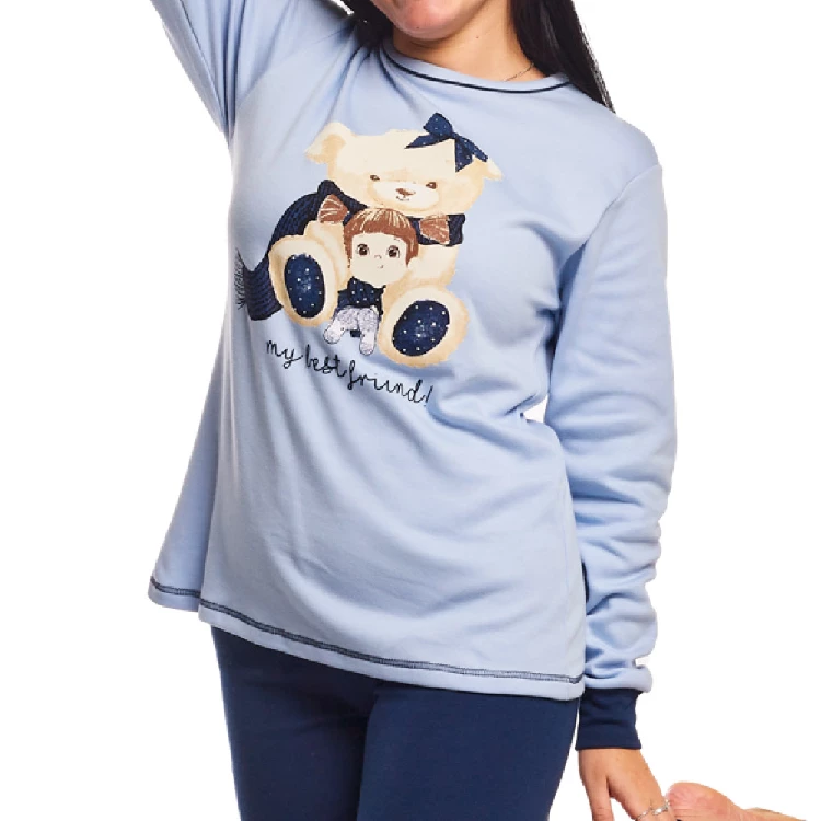 Pijama Mujer Lacotex 819Camiseta de manga larga y cuello redondo con estampado en el pecho.Pantalón largo básico.Presentación: Bolsa individual de la marcaColor: UnicoTallas: S,M, L, XL, XXL,3XL Y 4XLComposición: 100% algodón
