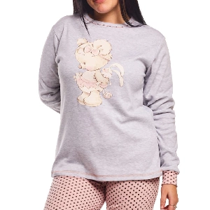 Pijama Mujer Lacotex 823Camiseta de manga larga y cuello redondo con estampado en el pecho.Pantalón largo básico.Presentación: Bolsa individual de la marcaColor: UnicoTallas: S,M, L, XL, XXL,3XL Y 4XLComposición: 100% algodón
