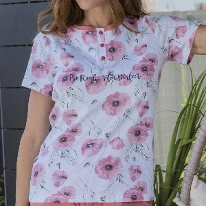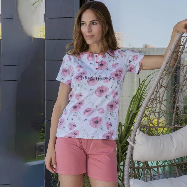 Pijama mujer Muslher 256009Camiseta de manga corta y cuello abotonado, con estampado completo.Pantalón corto liso.Presentación: Caja individual de la marcaColor: ÚnicoTallas: S, M, L, XL, XXL, 3XL, 4XL y 5XLComposición: 100% Algodón