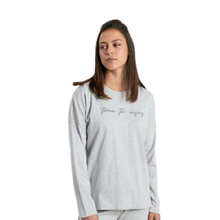 Pijama Mujer Muydemi 250003.Modelo de manga larga y cuello redondo con estampado en el pecho.Pantalón largo basico con puños.Presentación: Bolsa individualColor: Único.Tallas: S, M, L, XL.Composición: