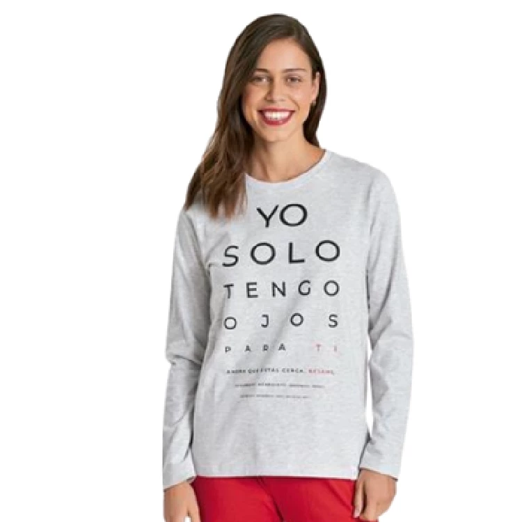Pijama Mujer Muydemi 250057Modelo de manga larga y cuello redondo con estampado en el pecho.Pantalón largo basico con puños.Presentación: Bolsa individualColor: Único.Tallas: S, M, L, XL.Composición: