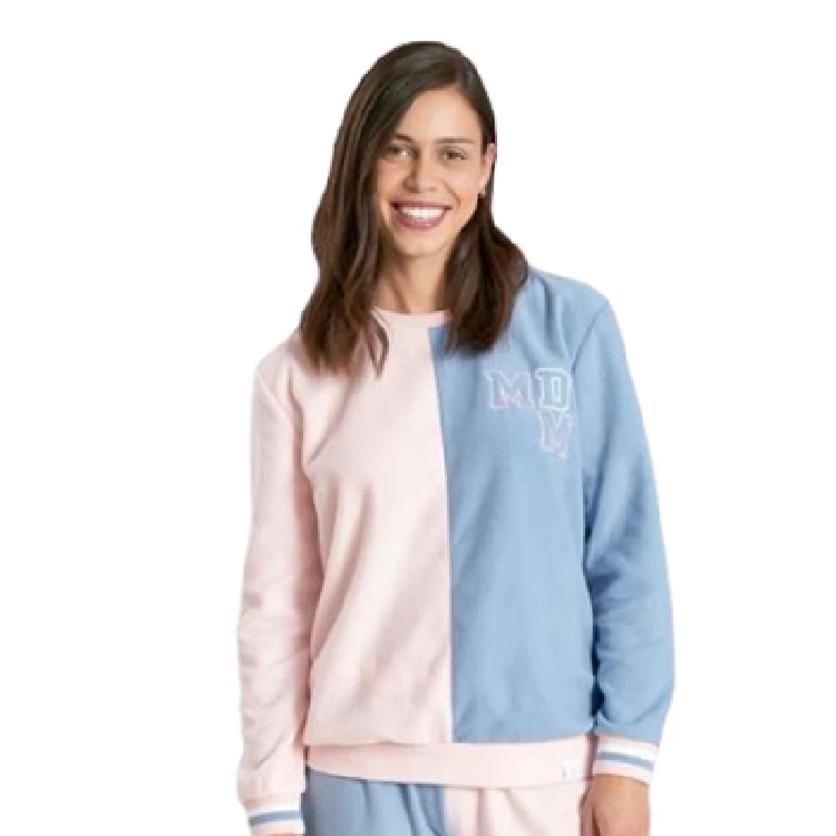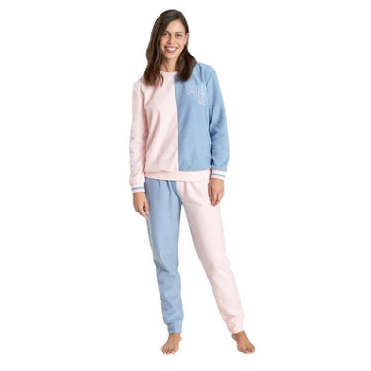 Pijama Mujer Muydemi 250202Modelo de manga larga y cuello redondo con estampado en el pecho y 2 colores. Manga con puño.Pantalón largo con 2 colores y puños.Presentación: pack individual.Color: Único.Tallas: S, M, L, XL.Composición: