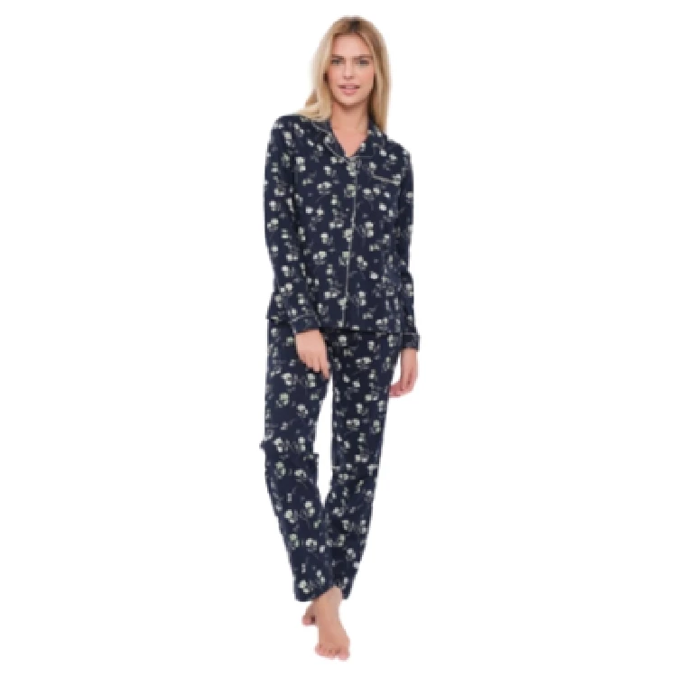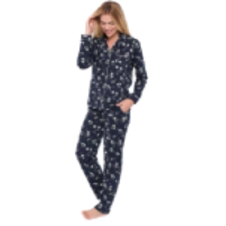 Pijama Mujer Muydemi 290020 Single Jersey.Camiseta de manga larga y abierto con botones y completamente estampada.Pantalón largo estampado con lazo en la cinturilla y bolsillos laterales.Presentación: pack individualColor: ÚnicoTallas: XS, S, M, L, XL, 2XLComposición: Hecho de Single Jersey, 100% Algodón.