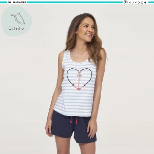 Pijama mujer MuyDemi MUY562029 Punto lisoModelo sin mangas y cuello redondo con estampado en el pecho.Pantalón corto con bolsillos lisoPresentación: Caja de la marcaTallas: S, M, L y XLColor: ÚnicoComposición: Punto liso 100% algodón
