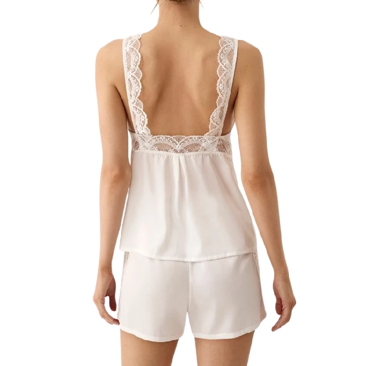 Pijama mujer Promise BN1222 NoviaConjunto lencero pantalón corto con top tirantes satén elástico.Presentación: Pack individualColor: Off-whiteTallas: S, M, L, XL y XXLComposición:
