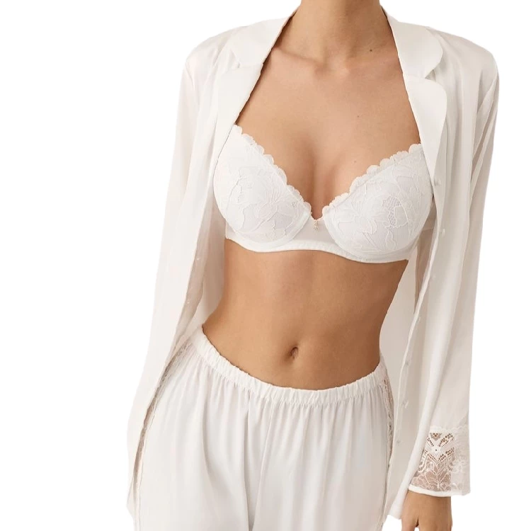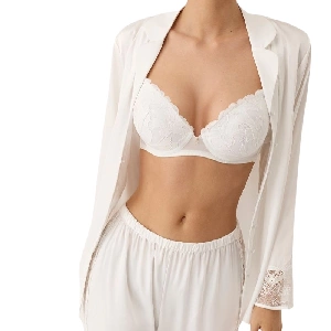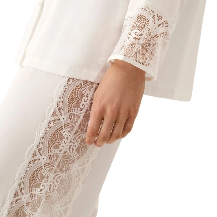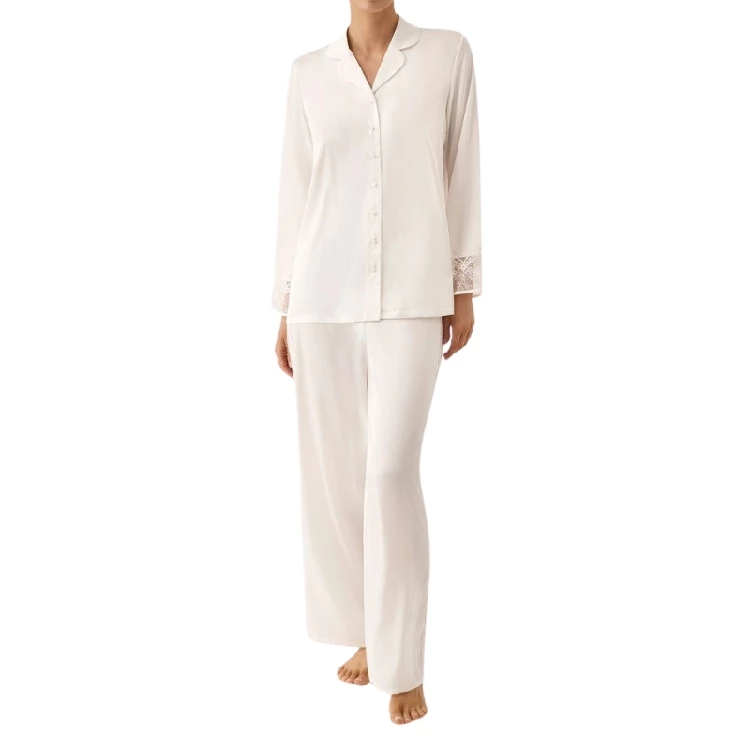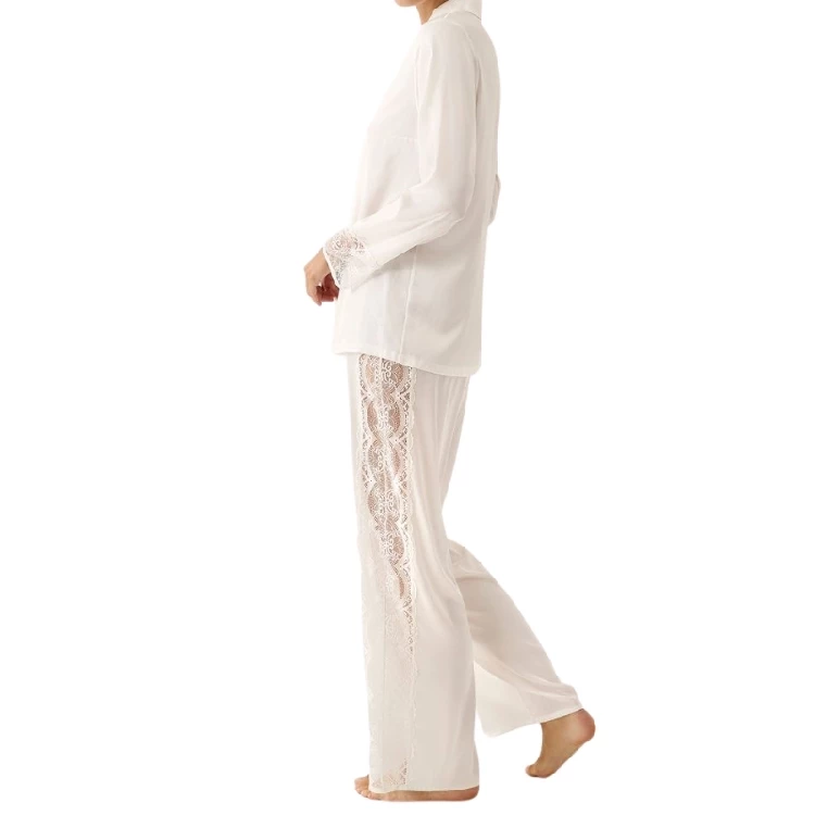 Pijama mujer Promise BN1272 NoviaConjunto esmoquin lencero pantalón largo con camisa manga larga abotonada satén elástico.Presentación: Pack individualColor: Off-whiteTallas: S, M, L, XL y XXLComposición: